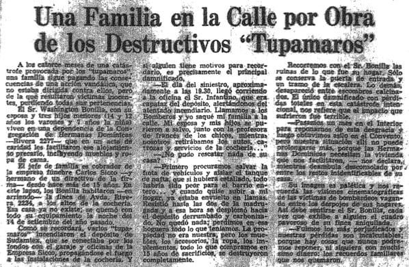 TÍTULO: “UNA FAMILIA EN LA CALLE POR OBRA DE LOS DESTRUCTIVOS “TUPAMAROS”