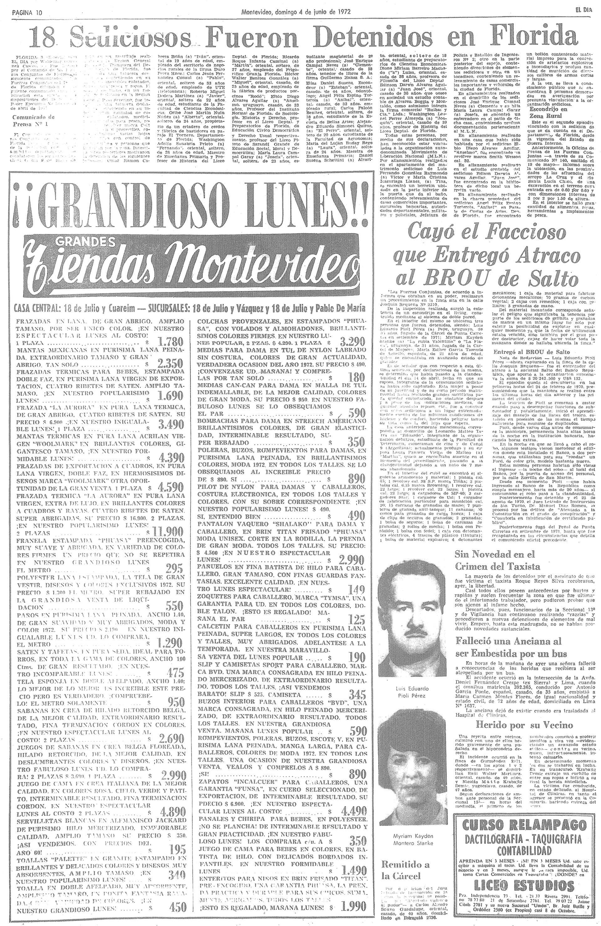Aparecen fotos. Nota de Redacción-... -ahora capturado en la finca de la calle Joaquín Requena- fue el entregador del asalto a la sucursal Salto del Banco República...
