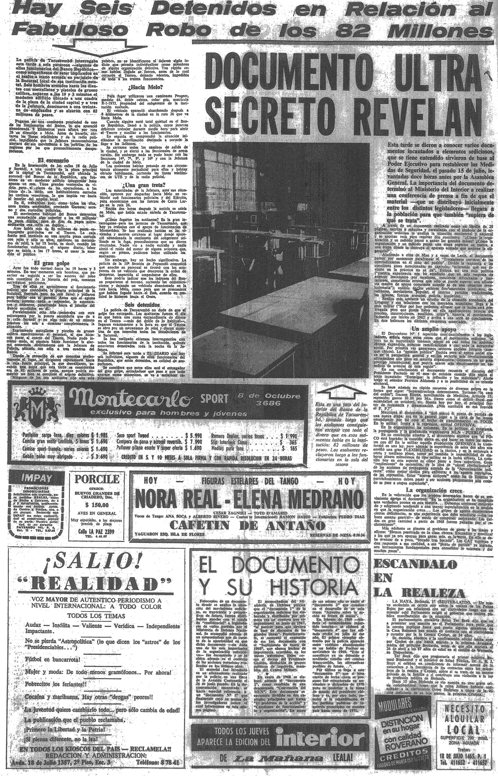 TÍTULO: “UN SUBGERENTE BANCARIO ENTREGÓ EL FABULOSO ROBO DE TACUAREMBÓ”